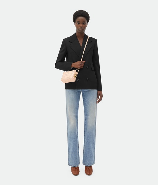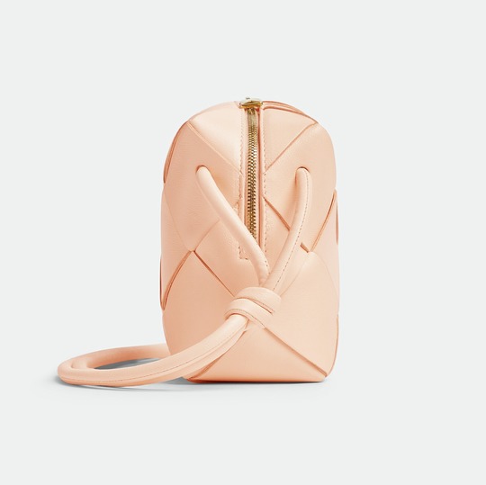 Loop 迷你相機(jī)包風(fēng)格簡(jiǎn)潔而日常,采用 Intrecciato 編織小牛皮制作,兩側(cè)配有金屬紐結(jié)裝飾。