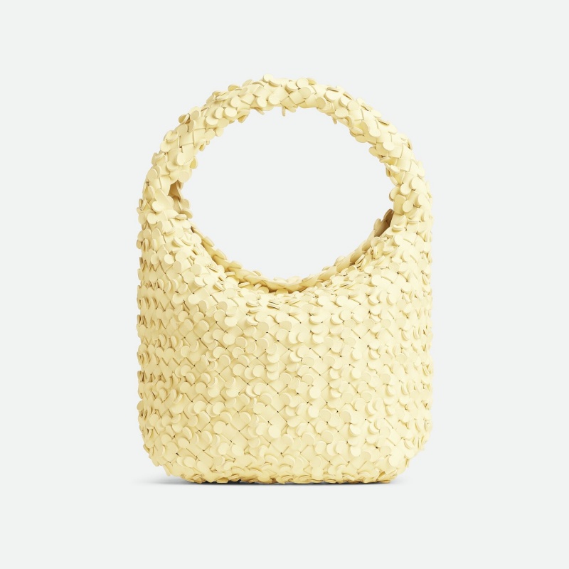 這組包袋運用柔軟的小羊皮通過 Intreccio 編織工藝制作而成,特別之處在于通體刺繡俏皮靈動的小圓片,搭配2種清甜溫柔的奶糕色調,尤其令人心動。