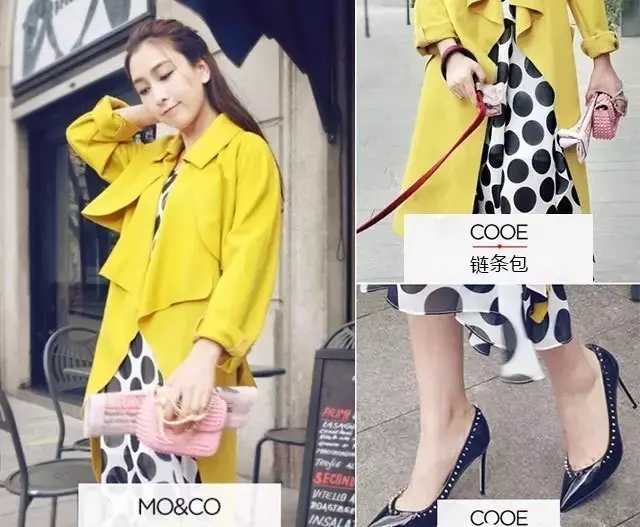 整套LOOK充滿藝術(shù)與個(gè)性的風(fēng)格碰撞感,波點(diǎn)和強(qiáng)烈個(gè)性感的COOE鉚釘高跟鞋組合搭配,似是以浪漫的手法表達(dá)現(xiàn)實(shí)的女權(quán)主義。櫻花色鉚釘手拿包溫柔雅致的同時(shí)也不至于過分甜膩。