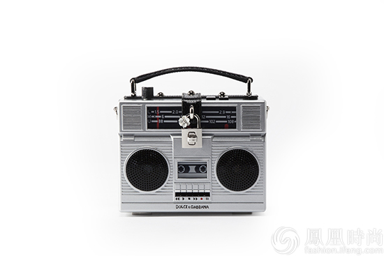Dolce&Gabbana手袋系列又添新員——Dolce收音機包。該款包在原版Dolce Box包搭扣上增加了經典圖案,外觀頗像20世紀80年代的立體聲收音機,連接到智能手機后,甚至可以像手提音響一樣播放音樂。