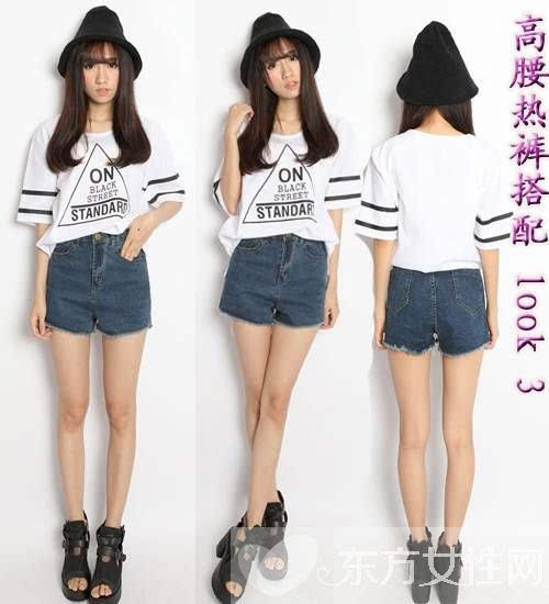 時尚點評:牛仔短褲是每個女生夏天必備的單品,高腰的設計能顯出曲線腰身,褲邊虛線設計,增添個性時尚感。搭配白色寬松短袖T恤,清爽休閑又舒適。是夏天街頭最IN的時尚搭配喲!