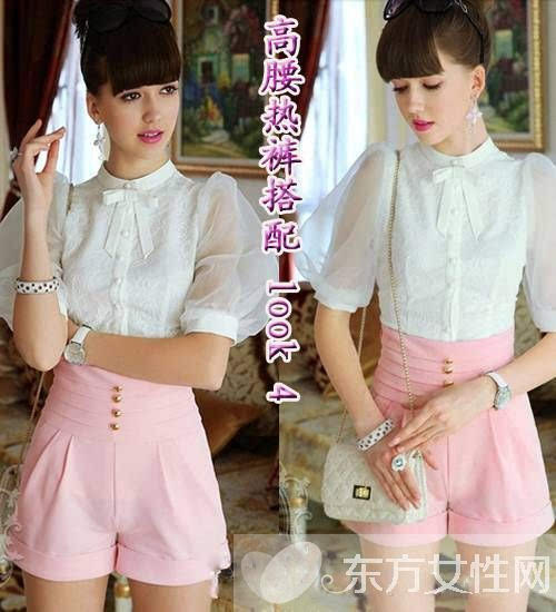 時尚點評:粉紅色的高腰熱褲,婉約時尚,給人一種小女人的溫柔感覺。高腰的設計不僅提臀還能拉長腿型,搭配白色的蕾絲襯衫,結合歐根紗的蓬蓬燈籠袖,無不體現歐式奢華復古情懷,優雅迷人。