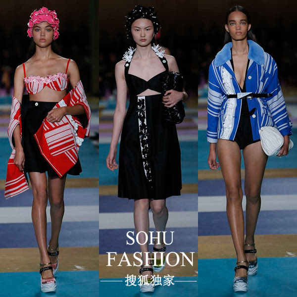 MiuMiu 2017 S/S 系列是文藝復(fù)古少女的狂歡,清新炫麗的色彩搭配各式度假服,輕松愉悅的氛圍撲面而來。本季,開場的前幾套Look自成系列,以豎直排列的花朵刺繡為媒介,保守比基尼制式、彼得潘圓領(lǐng),風(fēng)格輕靈乖巧。