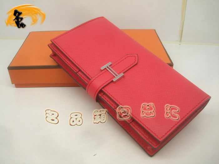 - 愛馬仕 Hermes最新款 原版皮女士長款錢夾 十字紋女包 Hermes錢包 紅色